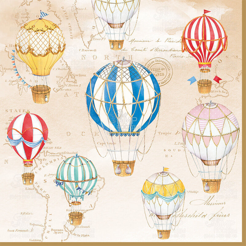 Мир посуды - Домашний интерьер - Домашний текстиль - Салфетки - Набор салфеток Air Balloons 33х33см R0414#AIRB