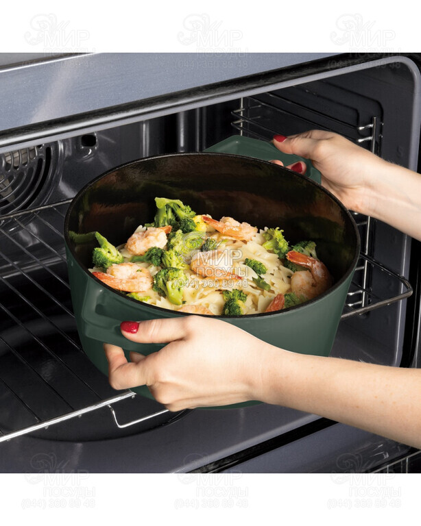 Стильная чугунная кастрюля от Berlinger Haus с классическим дизайном и современными элементами. Эта универсальная посуда всегда отлично работает, а ее внутренняя часть не впитывает вкусы и запахи. Она равномерно распределяет тепло и сохраняет тепло для экономии энергии. Для достижения наилучших результатов используйте режим от низкой до средней температуры. Еще одна замечательная особенность этой красивой и практичной кастрюли — большие ручки для безопасного захвата. Эмалевое покрытие действует как антипригарное покрытие и позволяет использовать очень мало масла при приготовлении пищи. Очистка также проста, так как внутренняя эмаль предотвращает прилипанию пищи.