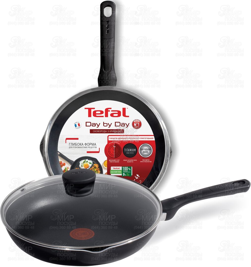 Сковорода Day By Day от Tefal делает ежедневное приготовление пищи легче. Эта высококачественная сковорода помогает создавать вкусные и полезные блюда каждый день, в то время, как глубокая форма и сливные носики делают слив и подачу блюд еще проще. Высококачественное антипригарное покрытие очень прочное и стойкое благодаря ультрасильной структуре и защитному титановому покрытию. Технология Thermo-Signal указывает на идеальную температуру для начала приготовления и гарантирует идеальную текстуру, цвет и вкус для вкусных и ароматных блюд ежедневно. Благодаря основе Diffusion base тепло хорошо распределяется по всей сковороде для отличного равномерного приготовления.