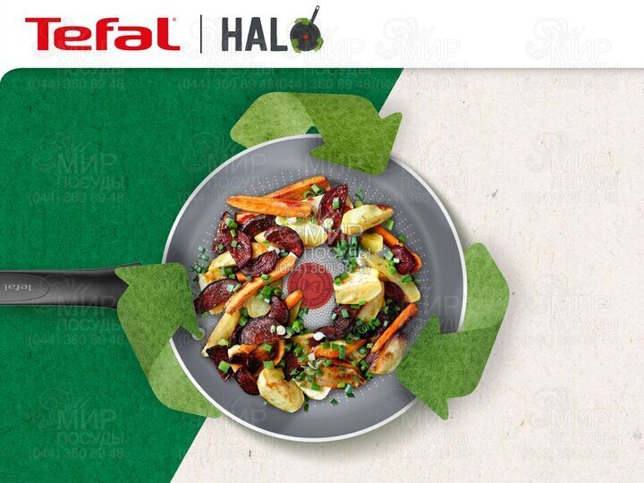 Сковорода Halo от Tefal делает ежедневное приготовление пищи легче. Высококачественное антипригарное покрытие очень прочное и стойкое благодаря ультрасильной структуре и защитному титановому покрытию. Технология Thermo-Signal указывает на идеальную температуру для начала приготовления и гарантирует идеальную текстуру, цвет и вкус для вкусных и ароматных блюд ежедневно.