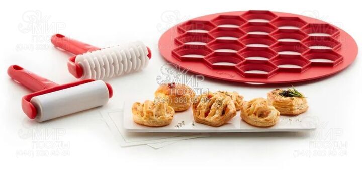 Двухсторонняя форма имеет 19 ячеек (круги и шестигранники). Идеально подходит для мини пирожков или пельменей. Оптимальный размер для закуски (2 укуса). Готовые изделия не ломаются и имеют идеальную форму. Очень легко достаются из формы благодаря специальному дизайну. Подходит для разных видов теста (слоистого, дрожжевого, песочного или теста для пельменей).