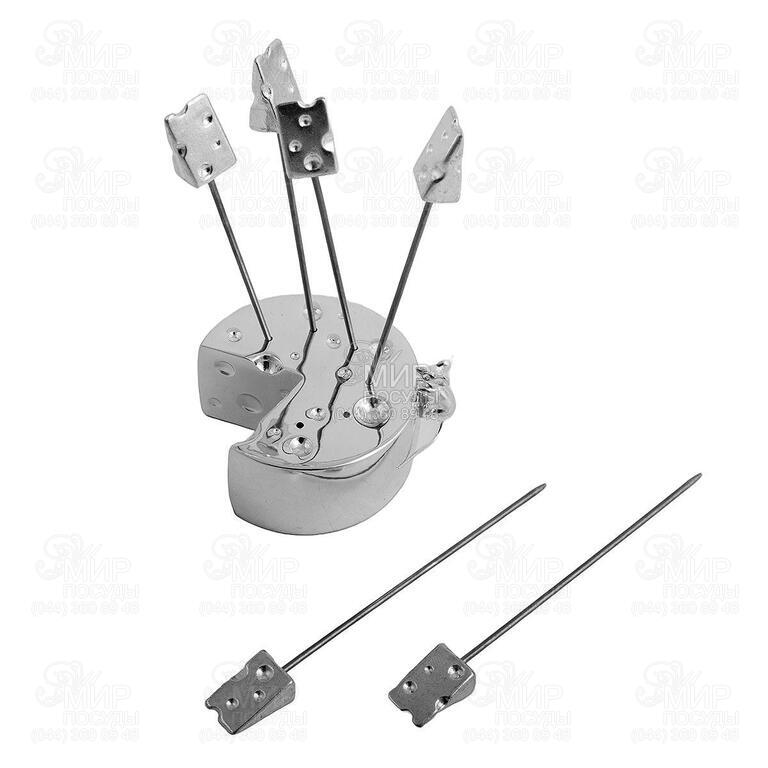Мир посуды - Кухонные аксессуары - Специализированные приспособления - Набор шпажек для канапе на подставке Мишенок и сыр 9х2,5х5см 1952-VER
