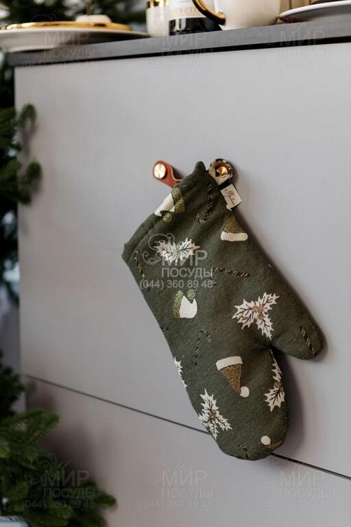 Прихватка-рукавица с люрексом Шапочки на зеленом 32х18см...