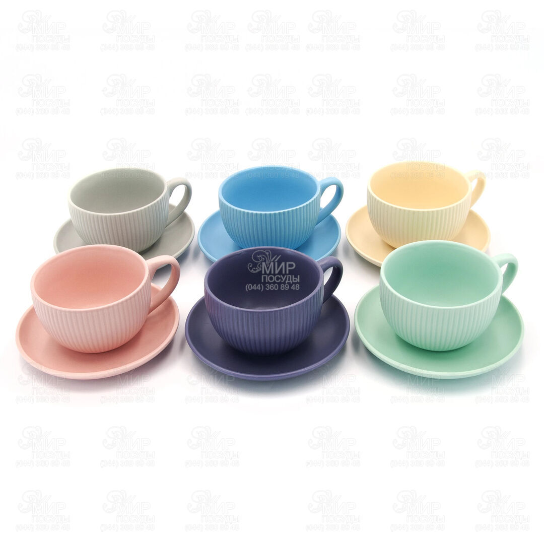 Мир посуды - Столовая посуда - Чашки - Чайные чашки - Чашка для чая с блюдцем Decagon Color 250мл M0430-CHB250-2C