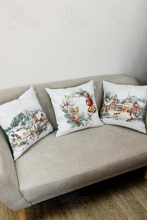 Мир посуды - Домашний интерьер - Подушки декоративные - Подушка декоративная с велюром Зимний город Веночек 45х45см 4823093451681