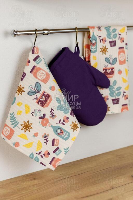 Мир посуды - Кухонные аксессуары - Рукавицы, прихватки, фартуки - Прихватка-рукавица + набор полотенец кухонных Фиолетовый 4823093455313