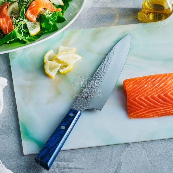 Нож серии Blue Breeze от Yaxell подходит для ежедневного использования на профессиональной или домашней кухне, поскольку выдерживает любую рабочую нагрузку. Сочетание материалов и дизайна Yaxell обеспечивает отличный внешний вид и удобство нарезки, что делает эти ножи лучшим выбором на кухне. Это идеальный выбор как для профессиональных шеф-поваров, так и для домашних поваров-энтузиастов, которые ищут высокое качество, долговечность и современность на своей кухне.
