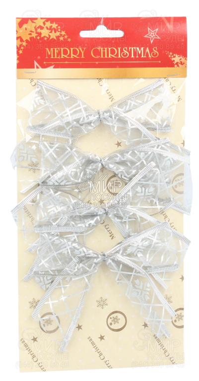Мир посуды - Домашний интерьер - Новогодний декор - Ёлочные игрушки - Набор бантиков декоративных серебро 10см 5900779853737_2