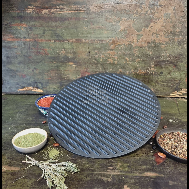 Характеристика: диаметр 35 см, высота 8 см, вес 3,4 кг