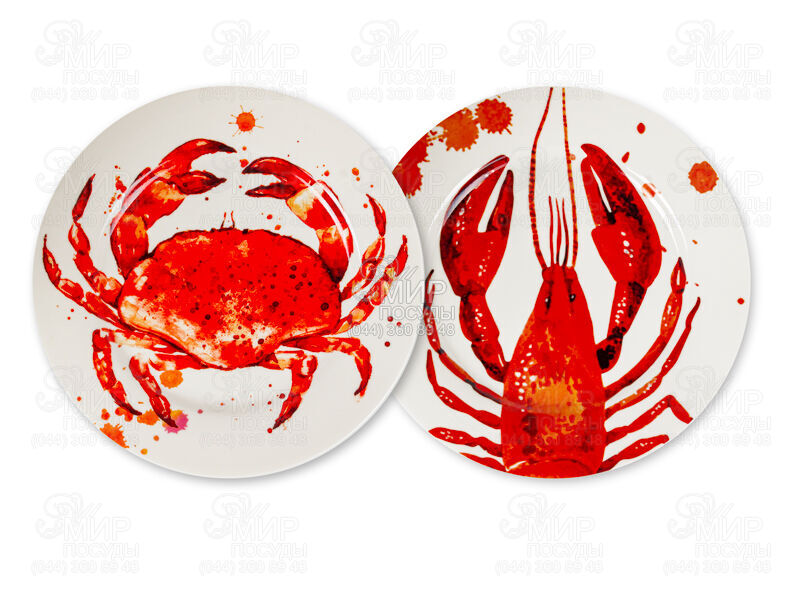 Стильный набор тарелок с оригинальными акварельными рисунками краба и лобстера. Яркий дизайн в красно-оранжевых тонах создает атмосферу морского ужина и отлично подходит для подачи рыбных блюд, морепродуктов или закусок. Эти тарелки станут ярким акцентом на Вашем столе и добавят колориту любой трапез.