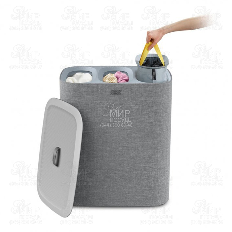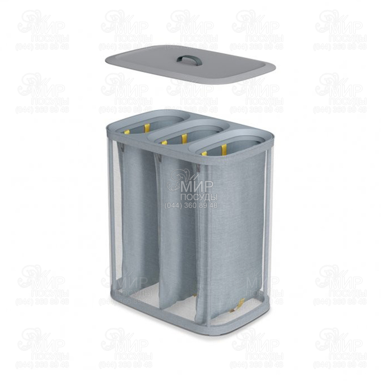 Корзина для белья Joseph Joseph - необходимый предмет в каждом доме. Имеет множество практических функций, которые сделают день стирки менее хлопотным. Под крышкой находятся три 30-литровых тканевых мешка, которые позволяют разделять вещи на светлые, темные и цветные вещи. Каждый мешок имеет ручки в верхней части, что позволяет удобно поднимать и переносить его прямо к машине, и вспомогательную ручку на основании, чтобы облегчить опорожнение. При замене каждого мешка в корзине нет никаких ненужных завязок или пуговиц, поскольку саморасположенный обод гарантирует, что он идеально возвращается на место, готовый к следующей загрузке. Стильный внешний вид ткани создан, чтобы дополнять различные стили и декоры интерьера, что делает его идеальным для хранения в ванной комнате, спальне или подсобном помещении. Поставляется в плоской упаковке с полными инструкциями по сборке.