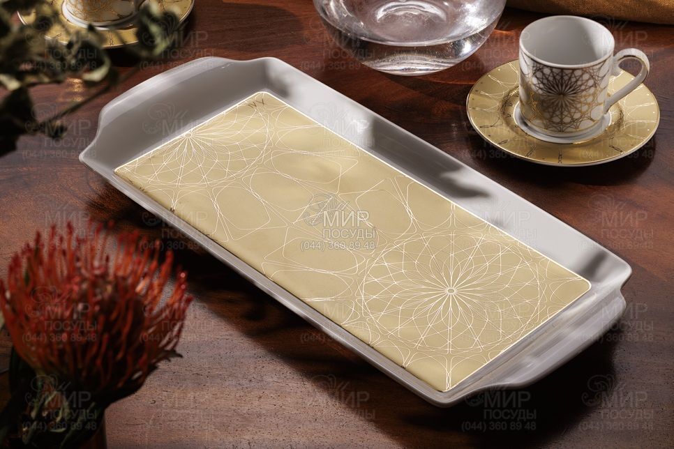 Серия Jenny Solaris в золоте от Cmielow – настоящая жемчужина, привносящая в сервировку гламур и тепло солнечного света. Вся фарфоровая поверхность глубокого, мерцающего золота, подчеркнутого выразительной сеткой геометрических линий. Этот завораживающий декор придаёт коллекции необыкновенную динамику. Ручная роспись золотом ещё больше подчёркивает изысканность и точность исполнения.