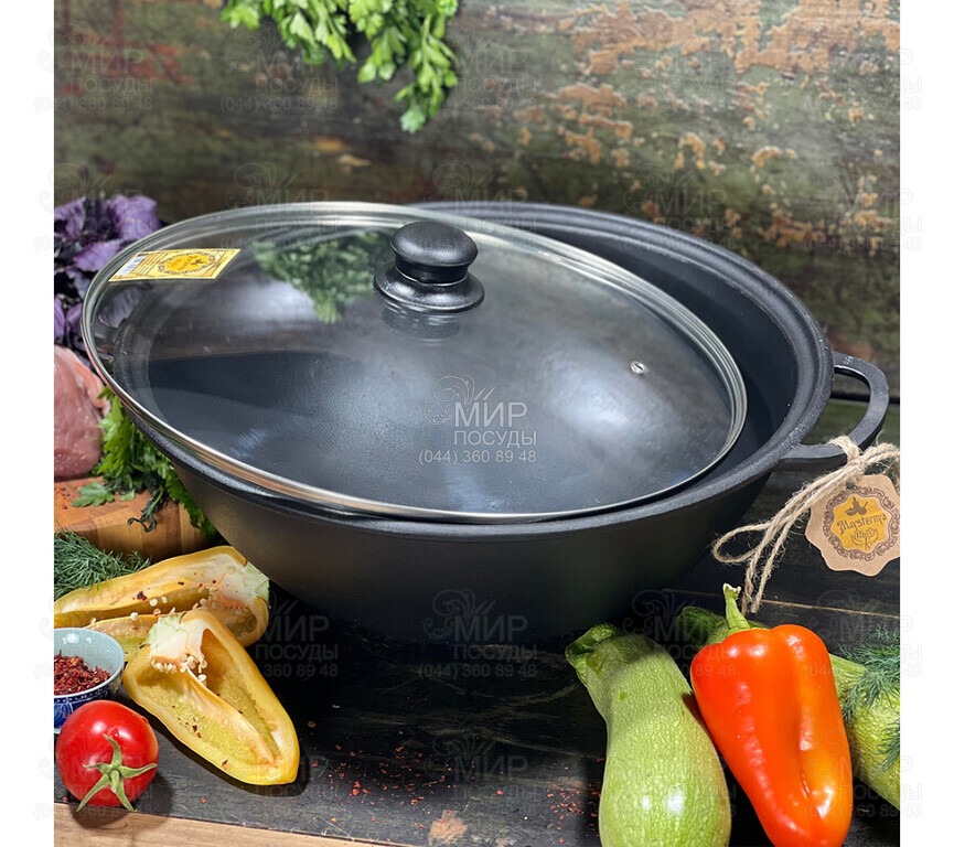 Казан от украинского бренда Maysternya изготовлен из чугуна. Покрытие на чугунной посуде образуется в процессе прокаливания, а в процессе приготовления оно постоянно обновляется. Но это не антипригарное покрытие, а тончайшая полимерная пленка из запеченного масла, которая защищает изделие от коррозии, а также обладает гидрофобными свойствами (отталкивает воду). И потому, чтобы не прилипало, готовить нужно с растительным маслом. Чугун обладает хорошей теплопроводностью, что позволяет равномерно прогревать всю поверхность емкости.