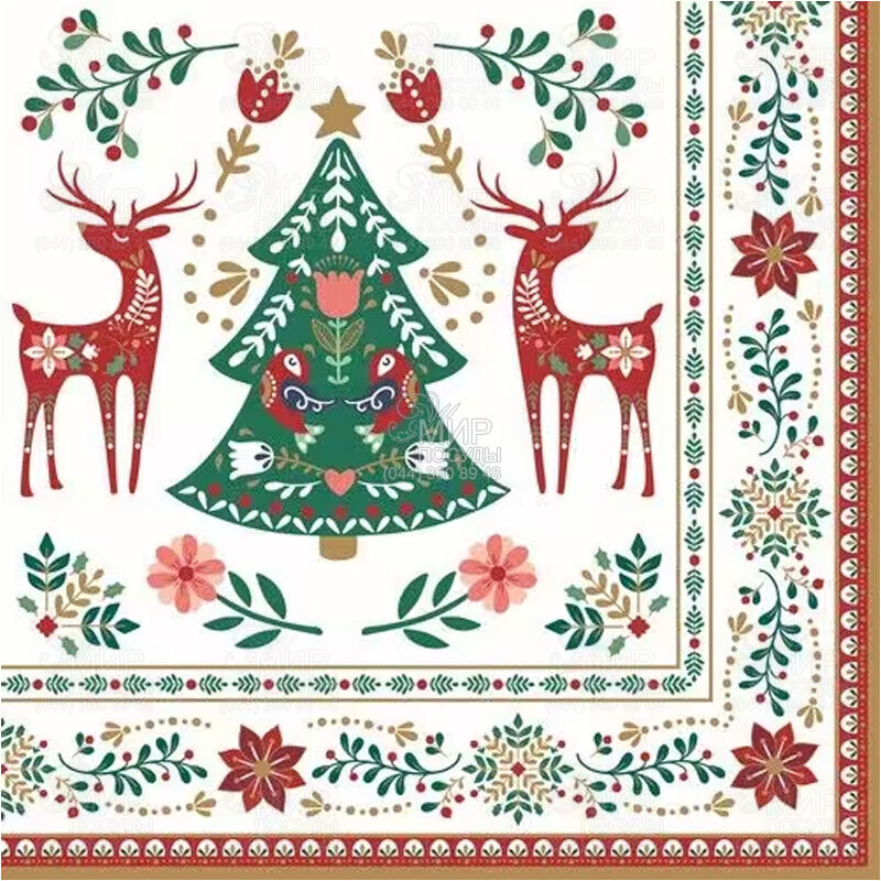 Салфетки Christmas Folk от Easy Life – это яркое воплощение праздничного настроения с нотками народного волшебства. Их дизайн вдохновлен фольклорными орнаментами и зимними мотивами, создающими атмосферу уюта, тепла и семейного праздника.