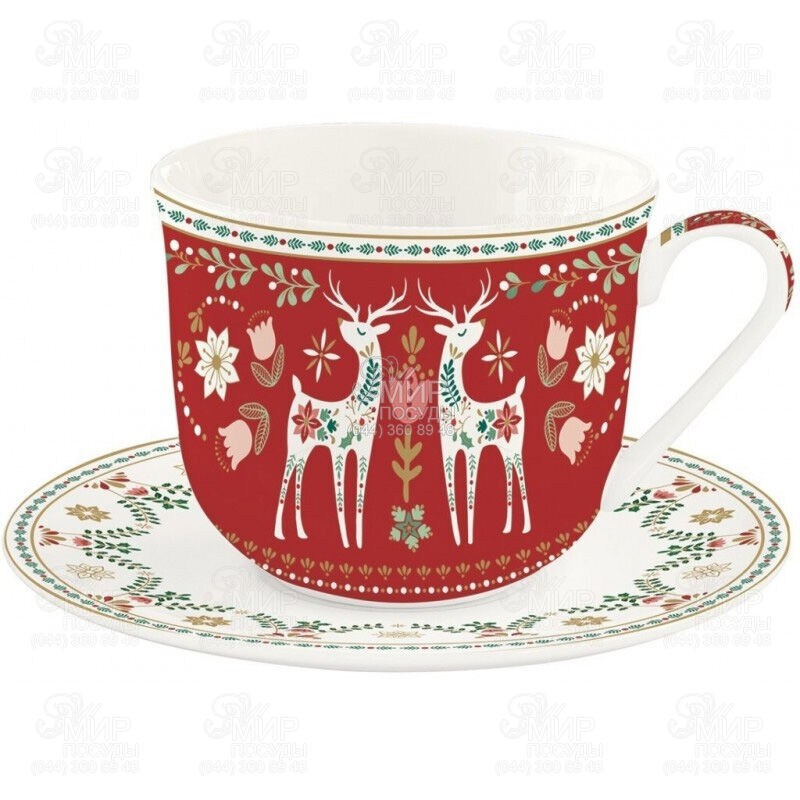 Мир посуды - Столовая посуда - Чашки - Чашки для завтрака - Чашка для завтрака с блюдцем Christmas Folk 400мл R1478#CHFO