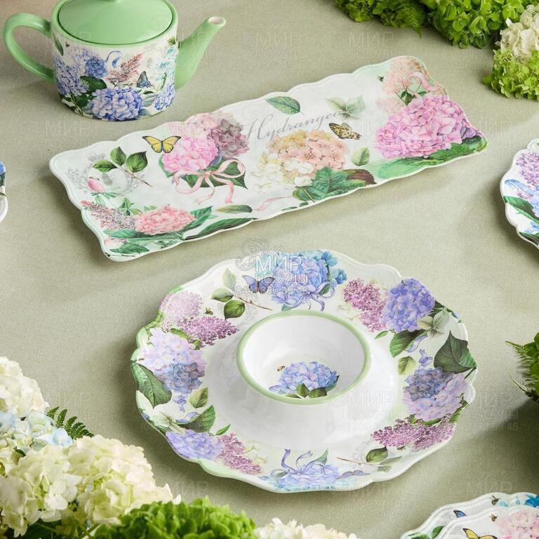 Блюдо прямоугольное Букет Гортензий 48х20см 34834