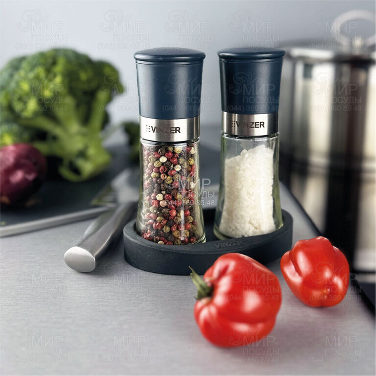 Мир посуды - Кухонные аксессуары - Мельницы для соли и перца - Набор мельниц для соли и перца на подставке Vinzer 14,1см 50195