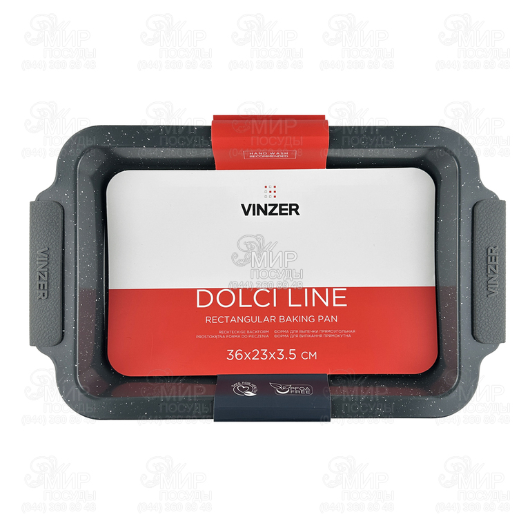 Форма для запекания Dolci Line от бренда Vinzer изготовлена из качественной углеродистой стали. Покрытие формы двухслойное, антипригарное, устойчивое к воздействию высоких температур и механических повреждений. Для удобства использования на ручках имеются силиконовые накладки, которые предохранят руки от ожогов.