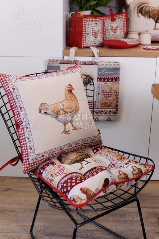 Коллекция гобеленового текстиля Благополучие от украинского бренда Прованс, с колоритным петухом, наполняет кухню атмосферой тепла, ароматом свежей выпечки и ощущением настоящего домашнего уюта. Дизайн вдохновлен фермерской тематикой: выразительные изображения петуха и курочки, мелкий орнамент в клетку, декоративные бордюры и теплая красно-молочная гамма создают атмосферу домашнего тепла и гастрономического уюта. Центральные композиции гармонично дополняются орнаментальными рамками и мелкими тематическими деталями, благодаря чему каждое изделие выглядит завершенным и декоративно насыщенным. Насыщенный красный цвет придает акцент, делая текстиль ярким элементом кухонного интерьера. Гобеленовое переплетение формирует объемный, глубокий рисунок, не наносимый поверх ткани, а сотканный в ее структуре. Благодаря этому изделия отличаются плотностью, долговечностью и износостойкостью, сохраняя форму и цвет даже при активном использовании. В серии представлены скатерти, салфетки, декоративные наволочки, прихватки, дорожки и кухонные аксессуары, легко комбинирующиеся между собой, создавая цельный ансамбль в стиле кантри или прованс.
