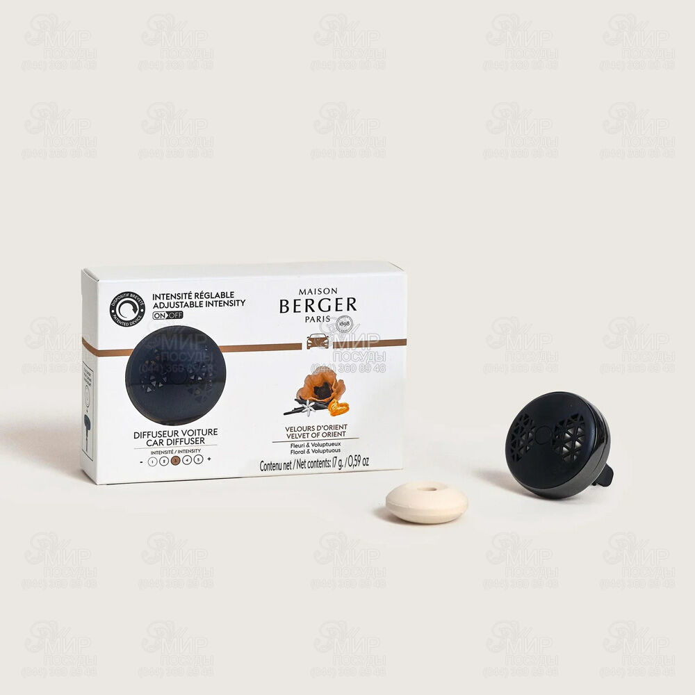 Диффузор от Maison Berger Paris - устройство, специально предназначенное для ароматизации воздуха в салоне автомобиля. Изюминкой устройства является форма и простота использования. Фронтальную сторону диффузора дизайнеры оформили тематически - ее ребра напоминают диски колеса или решетку радиатора. На задней стенке аксессуара расположена прищепка для удобного крепления в салоне. После покупки автомобильного диффузора достаточно переодически менять ароматические картриджи и наполнять салон автомобиля любым ароматом из богатого спектра Maison Berger Paris.
