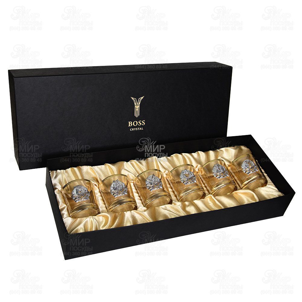 Тематический набор Охота от Boss Crystal посвящен охотникам, охотящимся в украинских лесах, водоемах и суше. В комплекте соединены изображения самых популярных среди охотников диких зверей. Каждый из шести бокалов имеет свою отличную иллюстрацию: Кабан, Косуля, Утка, Заяц, Лиса и Волк. В производстве хрусталя используется современная технология без использования оксида свинца, замененного цирконием для прочности и колокола, а также барий для оптической игры света на гранях изделий. Плавление кварцита происходит в экологически чистых электрических печах.