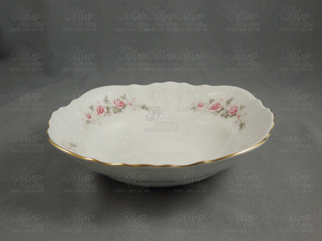 Блюдо овальное Bernadotte Бледные розы с золотой каймой 24см