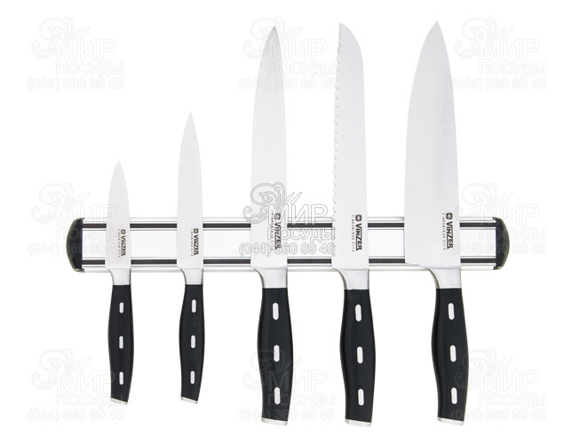 Набор ножей - предмет первой необходимости на любой кухне. Все ножи изготовлены из нержавеющей стали. Эргономичные ручки хорошо идеально сбалансированы и хорошо лежат в руке, не скользят. Лезвия долго сохраняют режущие свойства. Магнитная планка отлично удерживает ножи, которые всегда находятся под рукой.