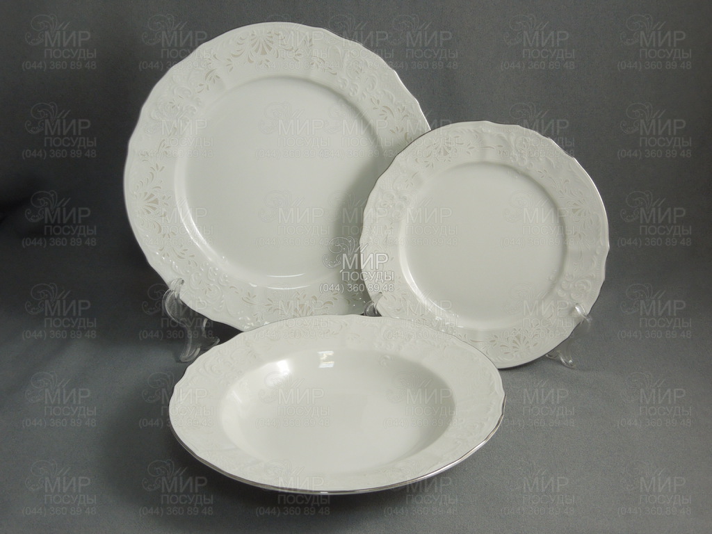 Мир посуды - Столовая посуда - Столовые сервизы - Столовый сервиз Bernadotte "Деколь, отводка платина" 6/26