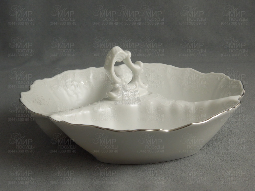 Мир посуды - Столовая посуда - Кабаретницы - Менажница малая Bernadotte "Деколь, отводка платина" 23см