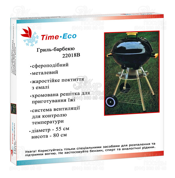 Гриль-барбекю от украинского бренда по производству товаров для отдыха Time Eco® - это прекрасная возможность насладиться пищей, приготовленной на открытом огне или углях. Гриль-барбекю представляет собой круглую чашу с крышкой, съемную решетку и высокие ножки с колесиками. Гриль изготовлен из прочной стали высокого качества. Поддон (чаша для угля) с обеих сторон покрыт жаростойкой эмалью методом распыления. Широкие ручки по бокам чаши позволяют перемещать гриль, а по окончании работ выбросить оставшиеся среди пепла угольки. Крышка гриля покрыта огнестойким порошковым лаком. Температура в котле во многом зависит как от количества угля, так и от того, насколько открыта заслонка. Верхняя заслонка расположена на крышке, она открывает отверстия для подачи воздуха ручкой-регулятором. Крышка с широкой ручкой наверху предоставляет возможность готовить блюда практически без контроля и не взирая на погоду, защищая продукты от ветра и дождя. Хромированная решетка с прочными прутьями позволяет удобно расположить продукты практически любого размера. Емкость для пепла, расположенная ниже чаши для угля, изготовлена из стали с гальваническим покрытием, которое защищает металл от коррозии и увеличивает его износостойкость. Стойка под чашей так же изготовлена из стали, покрыта огнестойким порошковым лаком. Стойка имеет два пластиковых колеса для удобства транспортировки гриля и две ножки для его надежной фиксации на месте грядущего барбекю. Небольшая решетка внизу предназначена для дров и пакета с углями. Универсальная конструкция гриля-барбекю предполагает множество вариантов приготовления блюд на свежем воздухе.