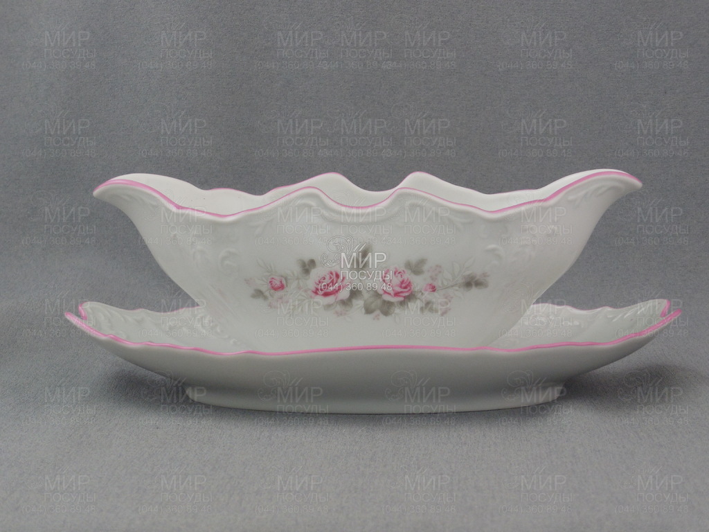 Блюдо "полумесяц" Bernadotte Бледные розы с розовым кантом...