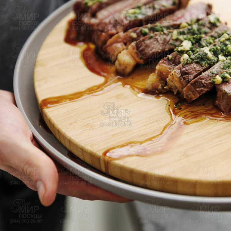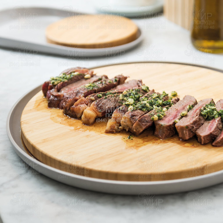 Мир посуды - Кухонные аксессуары - Доски - Доска разделочная с тарелкой Leo line серый 36см 3950058