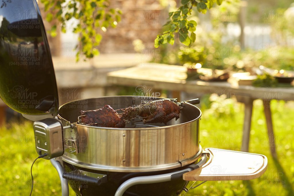 Вертел для гриля изготовлен из высококачественного нержавеющей стали, полированная поверхность. Ротационные и мясные вилки из нержавеющей стали. Вертел используют для приготовления вкусных гриль-блюд, таких как жаркое, курица, ребра и многое другое. Равномерным вращающем движением обеспечивает отличный результат приготовления без пересушивания блюда. Работа вертела от электродвигателя с питанием от сети или аккумулятора(батарейки не входят в комплект поставки). Частота вращения вертела 3 об/мин. Мотор защищен от брызг. Противовес идет в комплекте. 4 вилки для мяса, что бы прекрепить курицу и т.д. Рекомендуется ручная чистка.