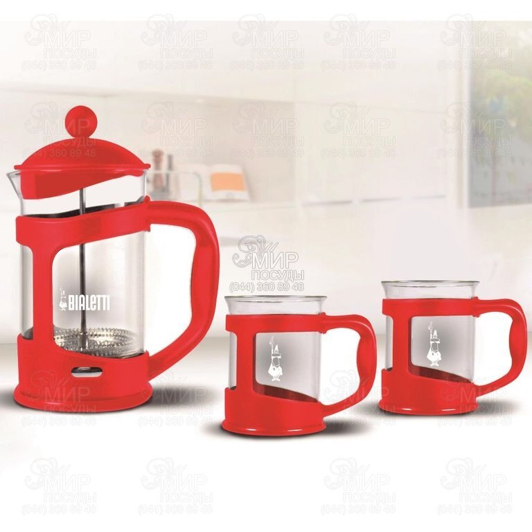 Набор Bialetti "Set Coffee press RED" - это набор в который входят френч-пресс на 800 мл и две чашки 200 мл. Возможность заваривать кофе , ягодные и травяные чаи.