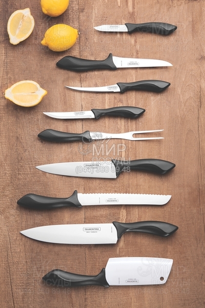 TRAMONTINA - это бразильская корпорация, мировой лидер в производстве товаров для кухни, дома. Всего корпорации принадлежит 10 фабрик, из них самые крупные: Tramontina S.A. Cutelaria (расположена в г. Карлос Барбоса, штат Рио-Гранде до Сул), фабрика Tramontina Farroupilha S.A. (находится в г. Фарроупилья, штат Рио-Гранде до Сул), фабрика Tramontina Belem S.A. (расположена в г. Белем, северном регионе Бразилии). Ассортимент продукции насчитывает 18000 видов, особенно славятся своим качеством ножи, лезвия которых изготовлены из мартенситной нержавеющей стали марки AISI 420. Рукоятки столовых приборов выполнены из полипропилена, натурального полированного дерева и специального пластика. В своих коллекция компания использует только качественные современные материалы, среди которых термостойкий нейлон, нержавеющая сталь 18/10, натуральное дерево и пр. Бренд Tramontina представляет пополнение ассортимента сразу в нескольких направлениях своей продукции, расширяя существующие серии и открывая новые.