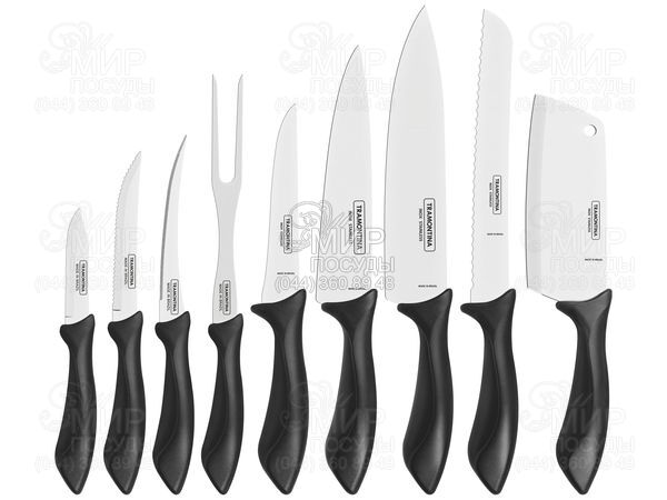 Набор ножей Affilata от бразильского производителя Tramontina изготовлен из нержавеющей стали 18/10. Все предметы с комплекта оснащены эргономичными полипропиленовыми рукоятками черного цвета. Каждый элемент разрабатывается с условием, чтобы он смог удовлетворить вкус, как обычного домовладельца, так и наиболее требовательного профессионального повара.