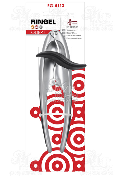 Консервный ключ Oder от RINGEL изготовлен из цинкового сплава. Эффектная сатиновая полировка обеспечивает непревзойденный внешний вид. Дополнительные нейлоновые накладки на рычагах обеспечат хорошее сцепление между руками и изделием. Изделие легко справиться с открытием тушёнки, паштета, рыбных, овощных и любых других консервных банок.