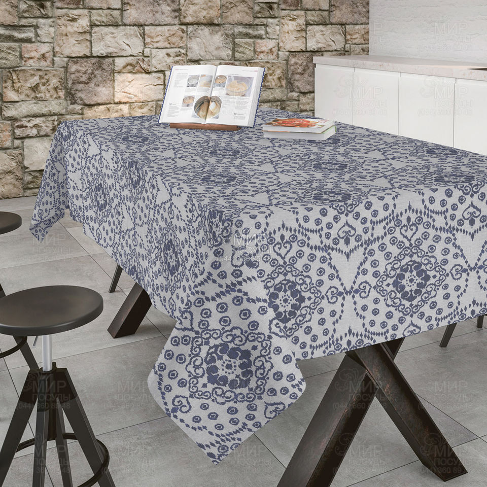 Скатерть идеально подходит для ежедневного использования, поскольку не требует особого ухода. В процесе производства скатерть дважды пропитывается акрилом, что формирует защитный слой, благодаря которому ткань устойчива к появлению пятен и легко очищается влажной губкой.