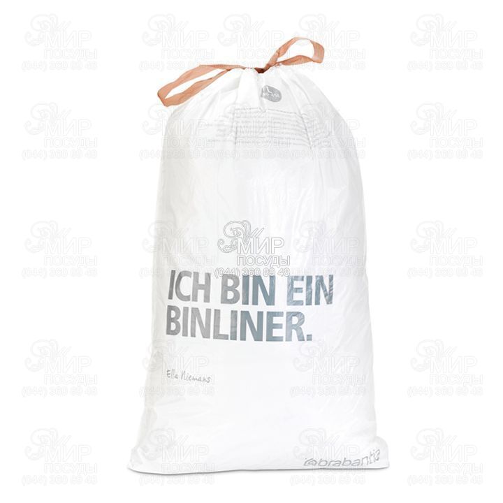 Мусорные пакеты и упаковка изготовлены из материалов на основе крахмала и поддаются полному биохимическому разложению. Легко затягиваются и переносятся – специальная лента для стягивания горловины. Удобно и быстро вкладываются и достаются из бака. Эстетичный вид – идеально подходят по размеру к мусорным бакам Brabantia, мешок не выступает наружу. Уникальная цветовая маркировка позволяет выбрать мешки нужного размера. Вентиляционные отверстия для удобства вкладывания в бак.