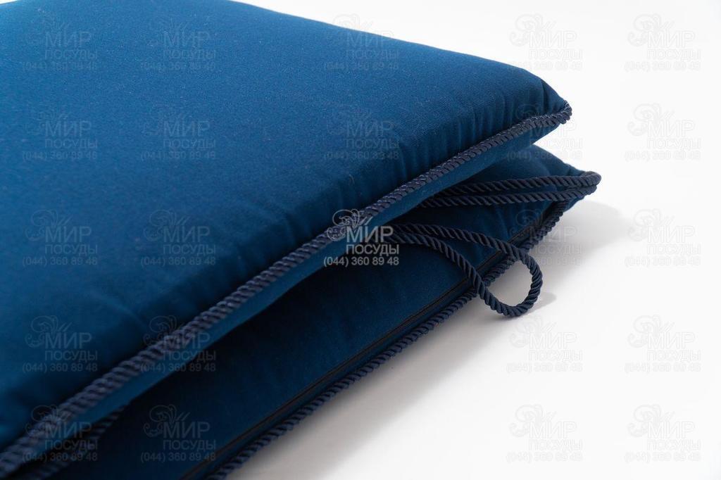 Декоративные подушки синего цвета для стула произведены из прочного материала, обладают износостойкостью и долговечностью. По краю пришит кант в виде шнура. Прекрасно подойдут для террасы, дачи, балкона.