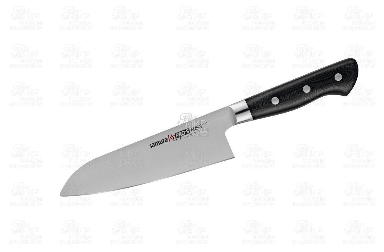 Традиционный японский нож Сантоку отлично подходит для нарезки, рубки и измельчения продуктов. Невероятно острый, отлично сбалансированный нож станет незаменимым помощником на домашней и профессиональной кухне. Японская нержавеющая cталь AUS-8, из которой изготовлен нож, обладает хорошей коррозионной устойчивостью, отличной стойкостью режущей кромки, легко полируется и шлифуется. Рукоять ножа, выполненная из влаго- и термостойкого материала G10, удобно лежит в руке, не скользит и устойчива к агрессивным средам. Samura "Pro-S" - это удобные и практичные ножи современного дизайна, которые станут истинным украшением на любой кухне.