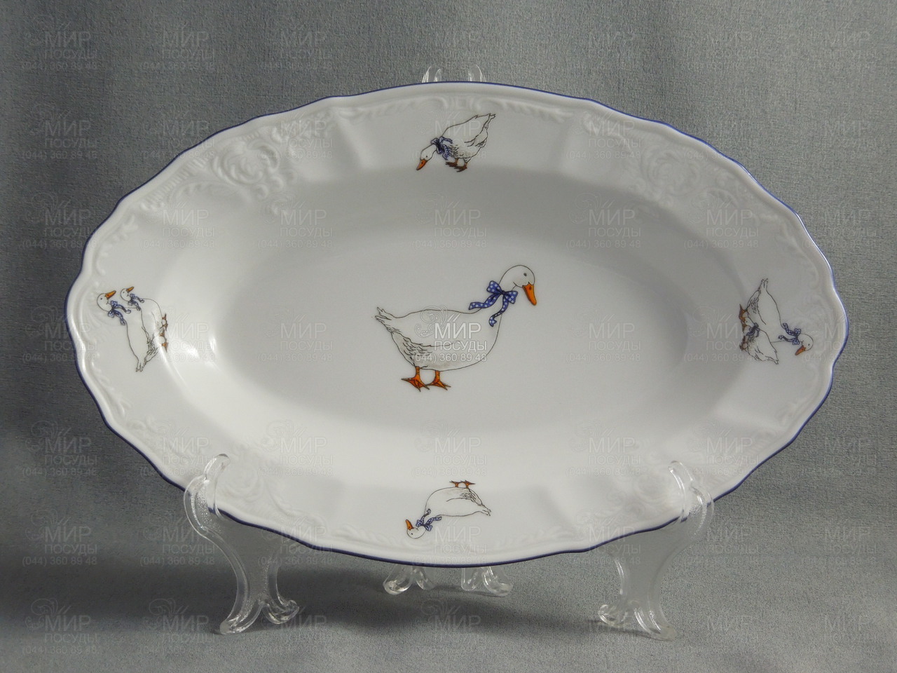 Мир посуды - Столовая посуда - Блюда - Блюда овальные - Блюдо овальное Bernadotte Гуси голубой кант голубой кант 24см