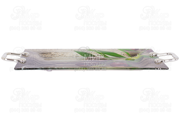 Поднос прямоугольный с ручками предназначен для сервировки стола. Поднос изготовлен из стекла. Классический дизайн, зеркальная полировка, гладкая поверхность, все это придает подносу элегантный вид и делает его незаменимым помощником как на праздничных обедах, так и на семейных вечерах.