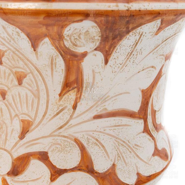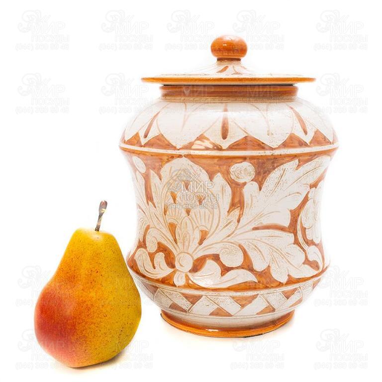 Изысканная классика, романтичный прованс или колоритное кантри — дизайн этого декора удачно впишется в любой стиль интерьера. Емкость из прочной глазурованной керамики может использоваться как стильный кухонный аксессуар или удобная вместительная шкатулка. Контуры светлого орнамента с декоративными потертостями выразительно подчеркнуты рельефной фактурой терракотового фона. Каждое изделие ручной работы является эксклюзивом с индивидуальными штрихами рельефа и оттенками росписи. Подлинность брендового происхождения этой продукции подтверждена фирменной подписью фабрики. В качестве ухода за изделием разрешено ручное мытье в теплой воде, без применения чистящих абразивов и жестких щеток. Коллекция декоративная и не предназначена для подачи еды.