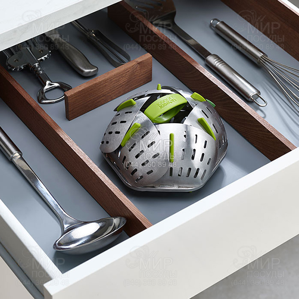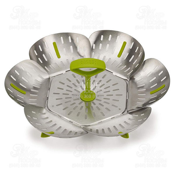 Пароварка Bloom от английского производителя Joseph Joseph это альтернатива классической стальной пароварке. Аксессуар отличается особой практичностью и удобством в применении. Пароварка изготовлена из высококачественного полипропилена и нержавеющей стали, оснащена жароустойчивым покрытием, силиконовыми плавниками и ножками. Пароварка регулируется по размеру, благодаря чему она подходит для кастрюль диаметром до 28 см. Аксессуар располагает большой вместительностью, но при этом компактно складывается для хранения. Изделие подходит для кастрюль с антипригарным покрытием. Удобный крюк для вилки позволяет легко и безопасно вынимать пароварку во время готовки.