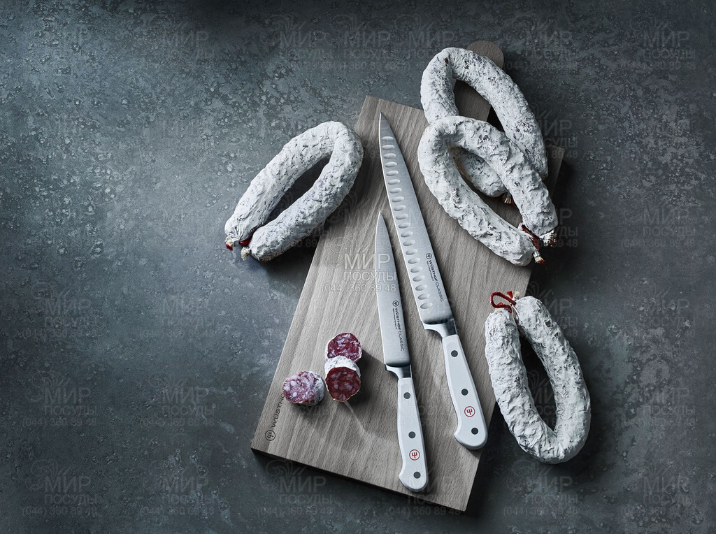 Нож универсальный от бренда Wuesthof серии Classic White изготовлен из нержавеющей стали. Когда вы выбираете для себя ножи Wuesthof, вы всегда можете ожидать что-то особенное! Ножи Wuesthof оснащаются клинками из специальной, устойчивой к коррозии и легко затачиваемой хроммолибденванадиевой стали. Такой материал гарантирует отличный рез. Этот универсальный нож также называют слайсер для ветчины. Он заслужил такое название благодаря чрезвычайно тонкому лезвию, которое позволяет нарезать очень тонкие ломтики твердых ингредиентов, особенно ветчины. Это качество делает нож идеально подходящим для нарезания овощей, фруктов и мяса.