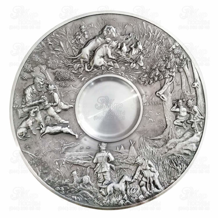 Тарелка декоративная «Охота» от немецкого производителя Artina SKS изготовлена из пищевого олова. Во всем мире продукция данной компании славится прекрасной ручной работой мастеров - для достижения совершенно гладкой поверхности все изделия полируют вручную. Стенки украшены барельефами картин.