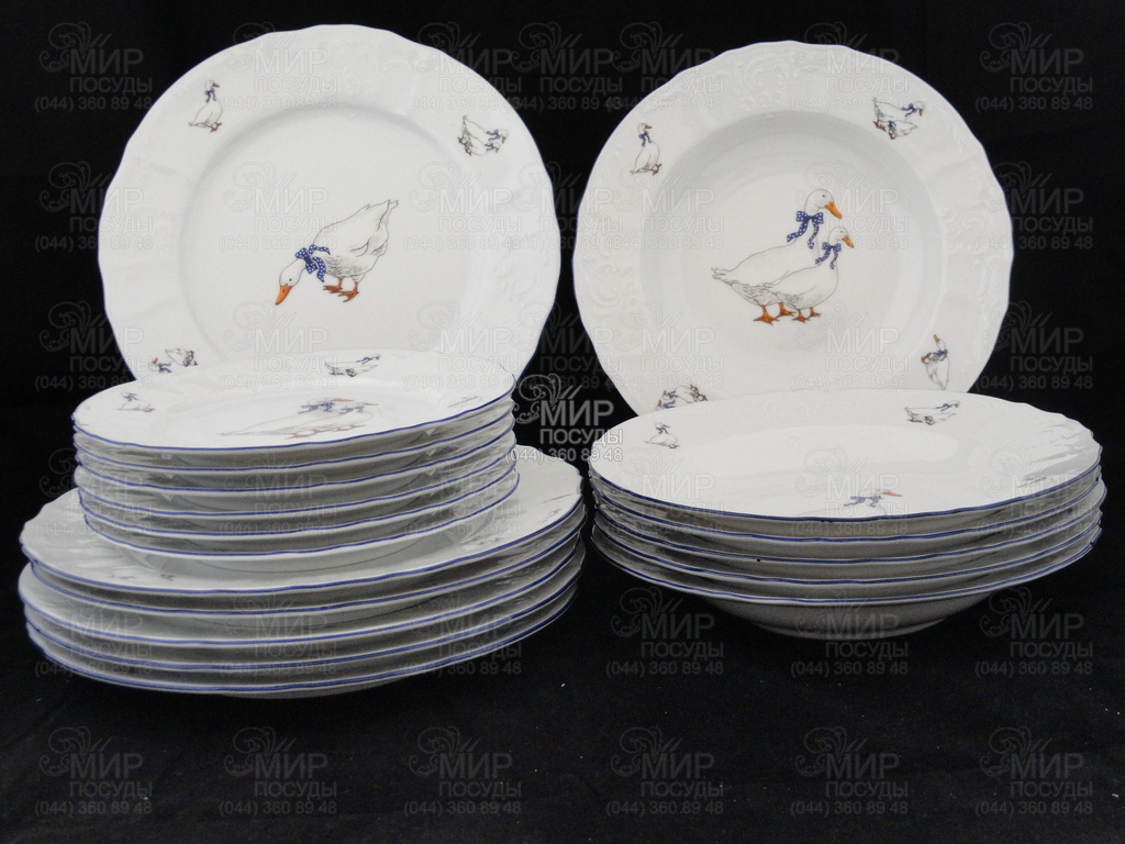 Мир посуды - Столовая посуда - Столовые сервизы - Столовый сервиз Bernadotte Гуси голубой кант голубой кант 6/26