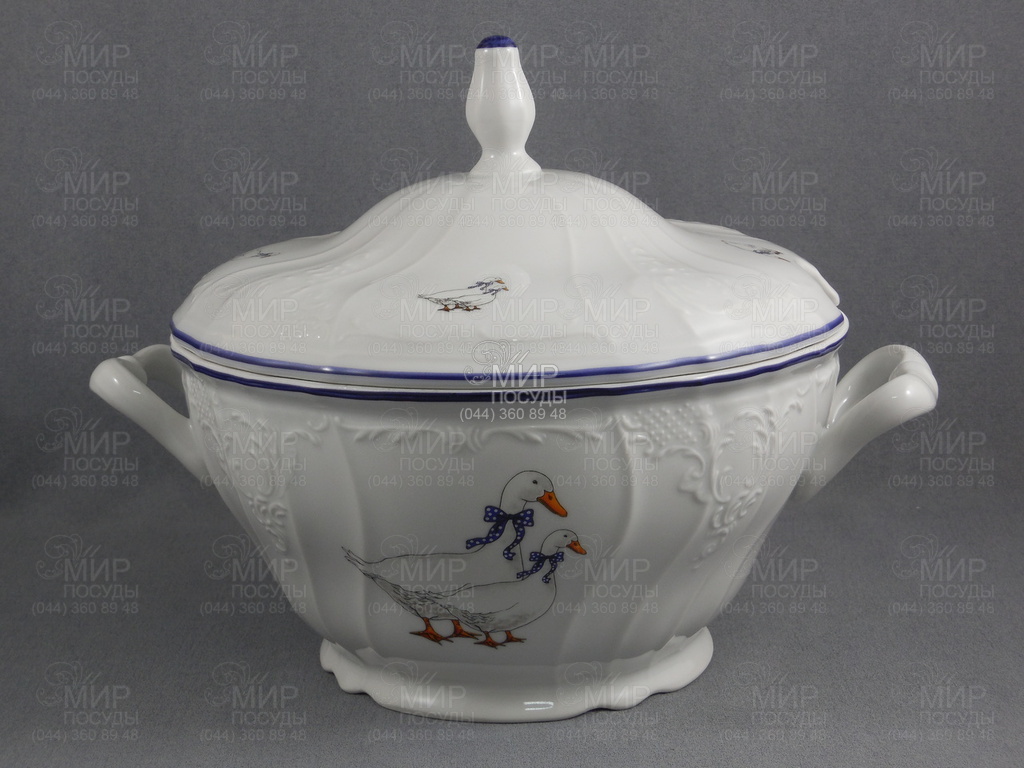 Набор бульонниц с блюдцем Bernadotte Гуси голубой кант...