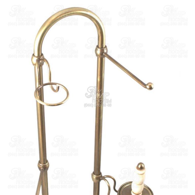Стойка для туалетных принадлежностей изготовлена из дерева и латуни от фабрики Capanni. Окрашена в цвет слоновой кости. Роскошная стойка для туалетных принадлежностей от Capanni, выполненная из антикварного итальянского дерева и латуни, будет солидным и статусным подарком на новоселье, день рождения или профессиональный праздник. Такая высокая стойка крепится к массивной устойчивой овальной подставке цвета слоновой кости, благодаря которой конструкция не упадет и не пошатнется. Основная часть представляет собой сияющую бронзой арку, к которой присоединены держатели для полотенец, стаканчика для зубных щеток и емкости для жидкого мыла. Эта стойка достойно украсит собой любую ванную и станет ее изюминкой.